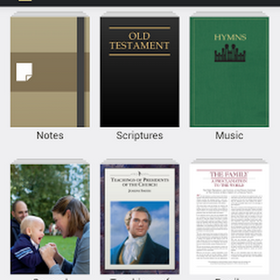 The library includes the scriptures, general conference addresses, music.